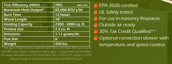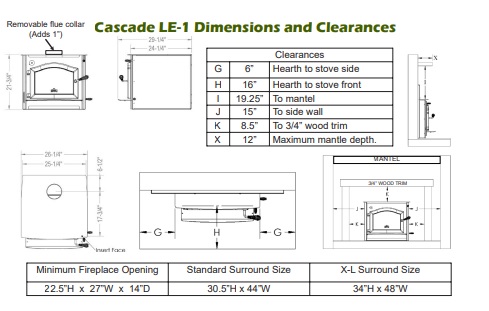 into an exceptionally efficient home heating center. Enjoy the fire while savoring the knowledge that its beauty is providing a clean burning, efficient and economical comfort. Guaranteed for a lifetime of service, the Kuma Cascade LE is truly an excellent choice for your fireplace