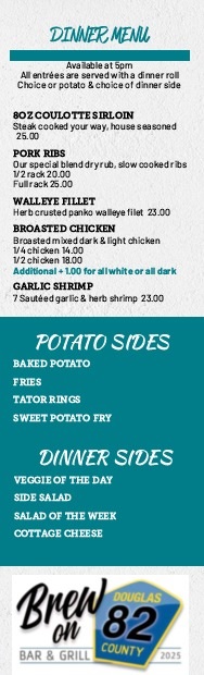 Brew On 82 isn’t your average small-town bar & grill — it’s a place where big flavor, good times, and great people come together. Our menu is packed with unique, carefully crafted dishes made with flavor in mind, giving you something new to love every time you stop in. And on Saturdays and Sundays, join us for a delicious brunch along with our special weekend menu, created to make your weekends taste even better!
